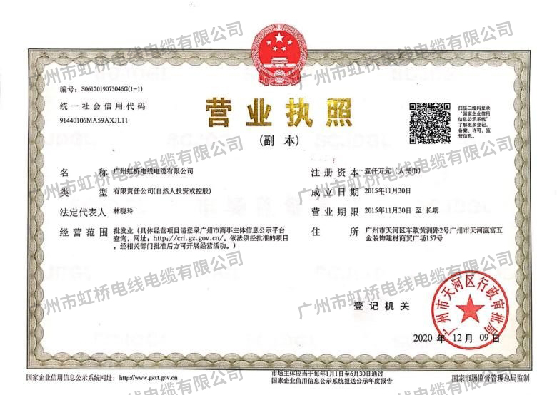 廣州虹橋電線電纜有限公司為廣東電纜一級(jí)授權(quán)代理